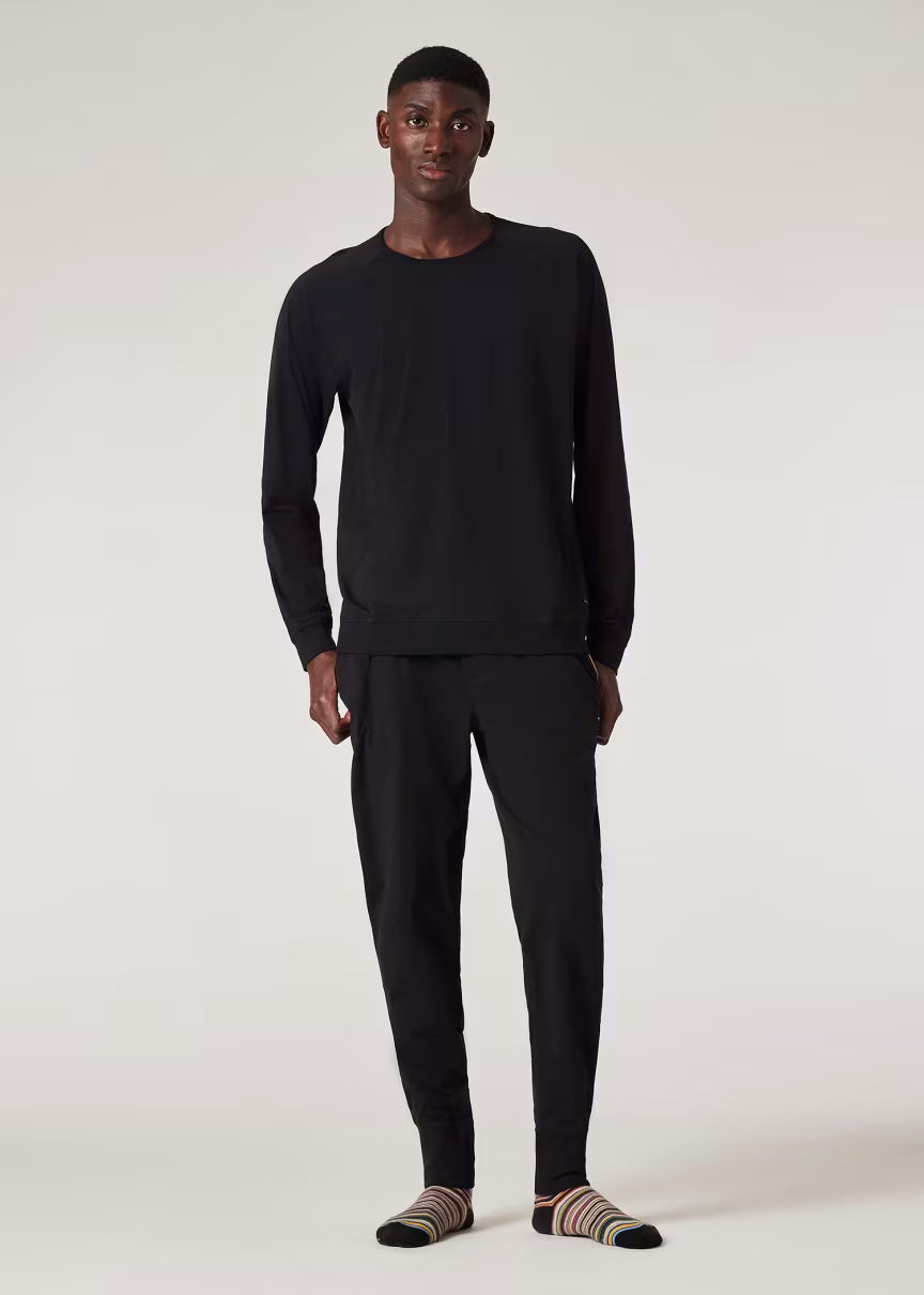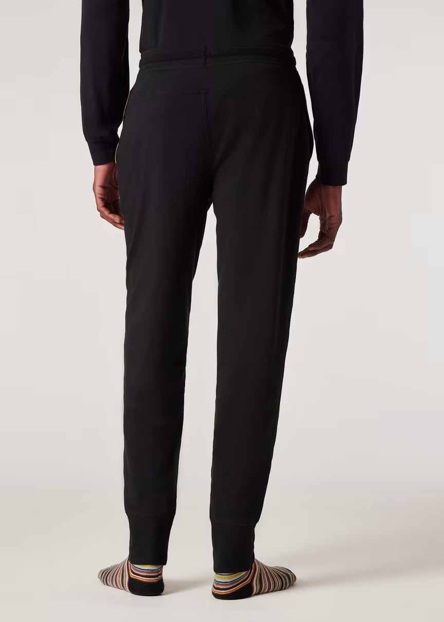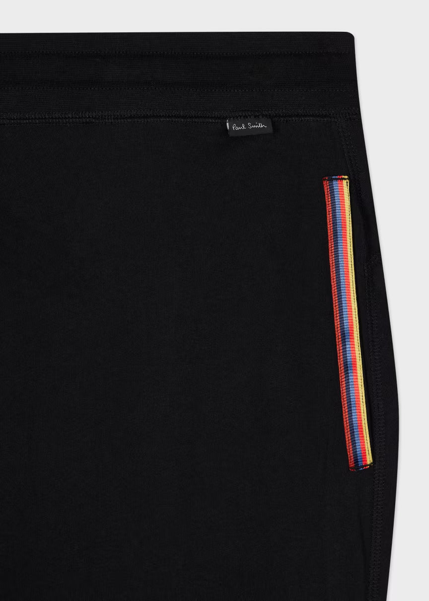 Crafted from pure jersey cotton, these Paul Smith lounge pants deliver effortless comfort without compromising on style. The relaxed fit pairs seamlessly with the brand's signature Artist Stripe banding at the hems, whilst practical on-seam pockets and an elasticated waistband ensure ease of movement. Perfect for refined leisure wear that transitions from home to casual outings.