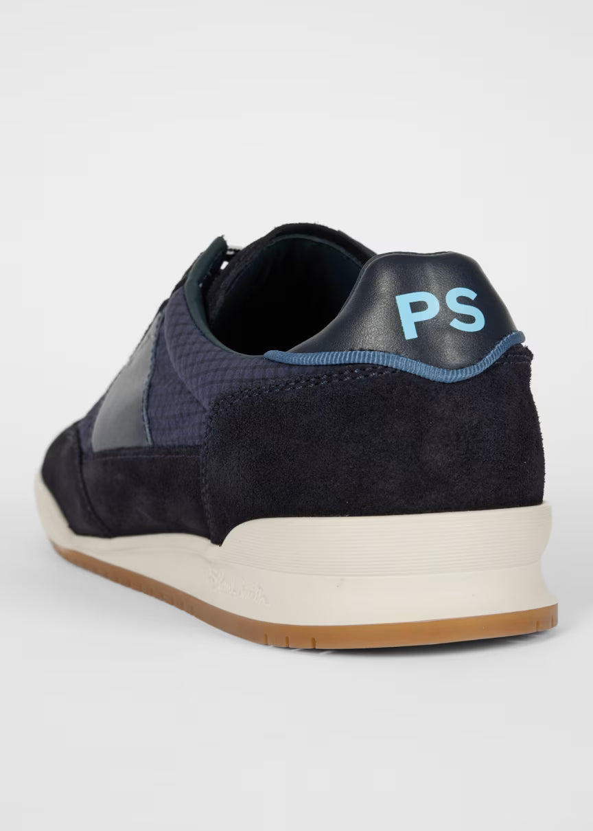 Crafted in Portugal from premium suede leather, these Paul Smith 'Dover' trainers showcase refined navy blue tones with subtle check panelling. The design balances understated elegance with practical comfort—contrast two-colour rubber soles provide durability, whilst cushioned insoles and flecked laces complete the sophisticated aesthetic. A versatile choice for the discerning gentleman.
