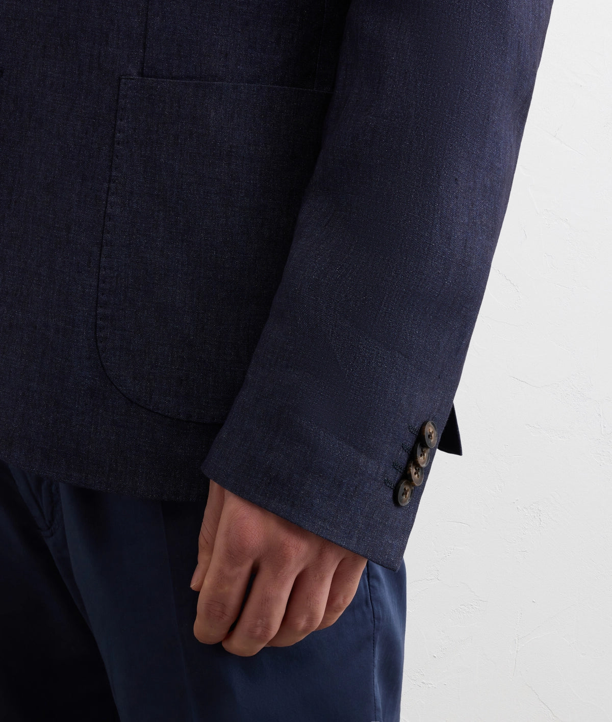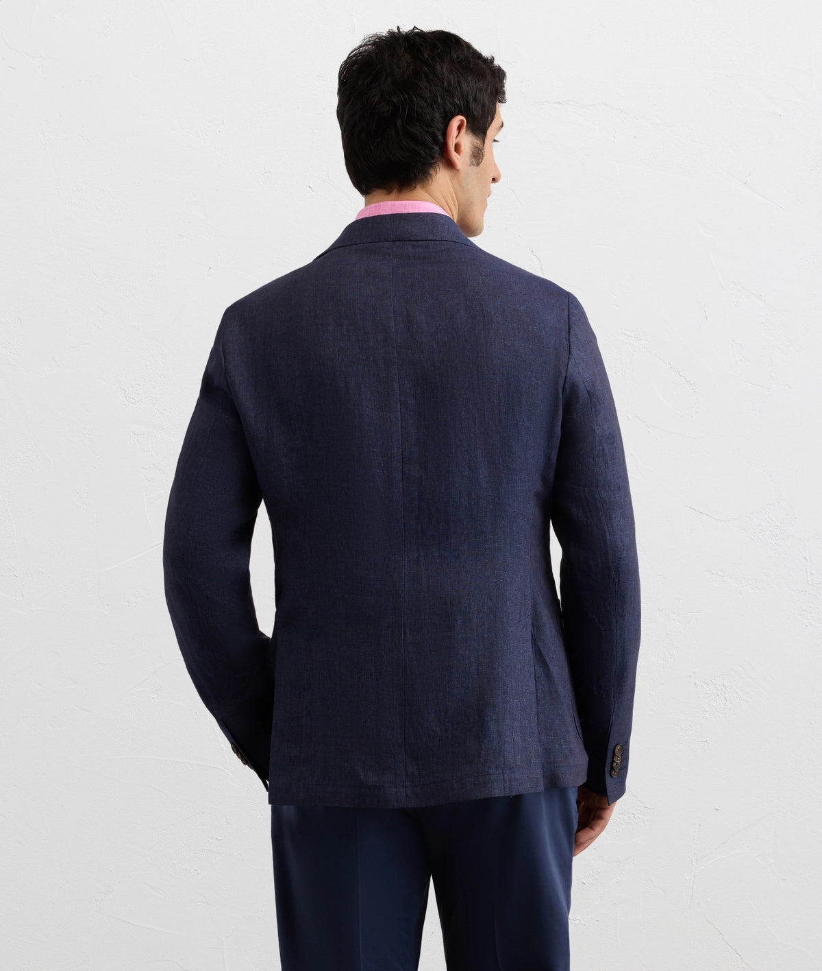 This unlined navy blue linen blazer epitomises contemporary summer tailoring. Crafted from 100% premium linen, it delivers natural breathability without sacrificing sophistication. The regular fit provides modern comfort and ease of movement, while the notched lapel ensures timeless versatility across business and casual settings. Patch pockets and side slits add functional detail, with a 73 cm length that balances proportion perfectly. Navy is the ultimate wardrobe anchor—effortlessly transitional and endlessly combinable. The quality linen breathes beautifully on warm days, maintaining its composed appearance from morning through evening. A refined essential for those who understand that true elegance lies in understated construction and natural fabrics.