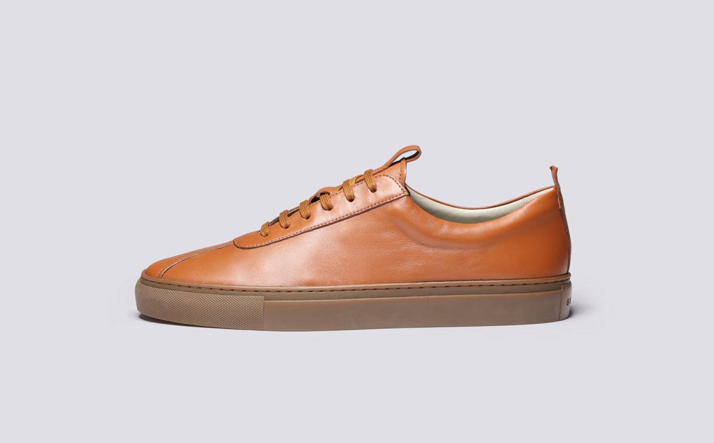 The Grenson Sneaker 1 channels vintage tennis court aesthetics with contemporary refinement. Crafted from supple tan nappa leather, this design draws inspiration from the clean lines of 1970s athletic footwear. The tonal rubber cupsole provides understated durability whilst maintaining the shoe's elegant silhouette, finished with our signature The Good Shoe branding. A timeless piece that bridges heritage sportswear with modern minimalist style.
