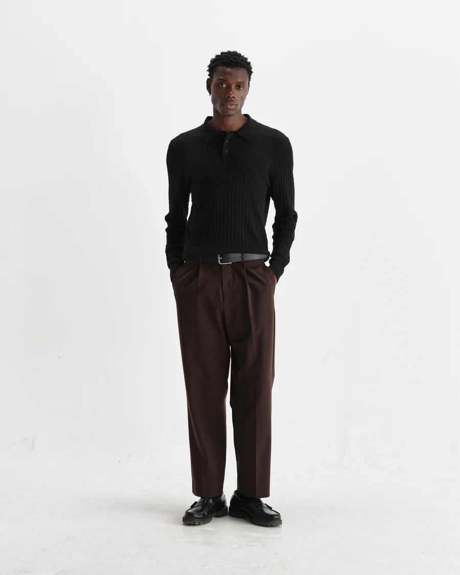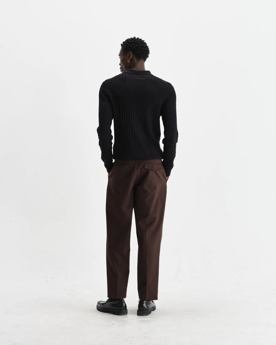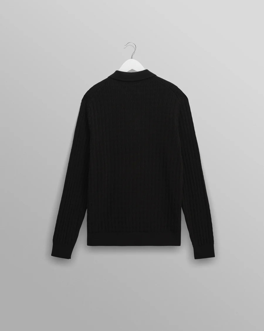 The Oban polo epitomises refined versatility. Tailored to a classic regular fit, this knit combines sumptuous cotton-cashmere for exceptional softness and warmth. An elevated vertical diamond stripe pattern in sleek black delivers understated sophistication, whilst ribbed collar, cuffs and hem ensure lasting structure. The button placket completes the polished aesthetic. Equally at ease for everyday wear or evening occasions, this is the essential polo that transcends seasons and moments.