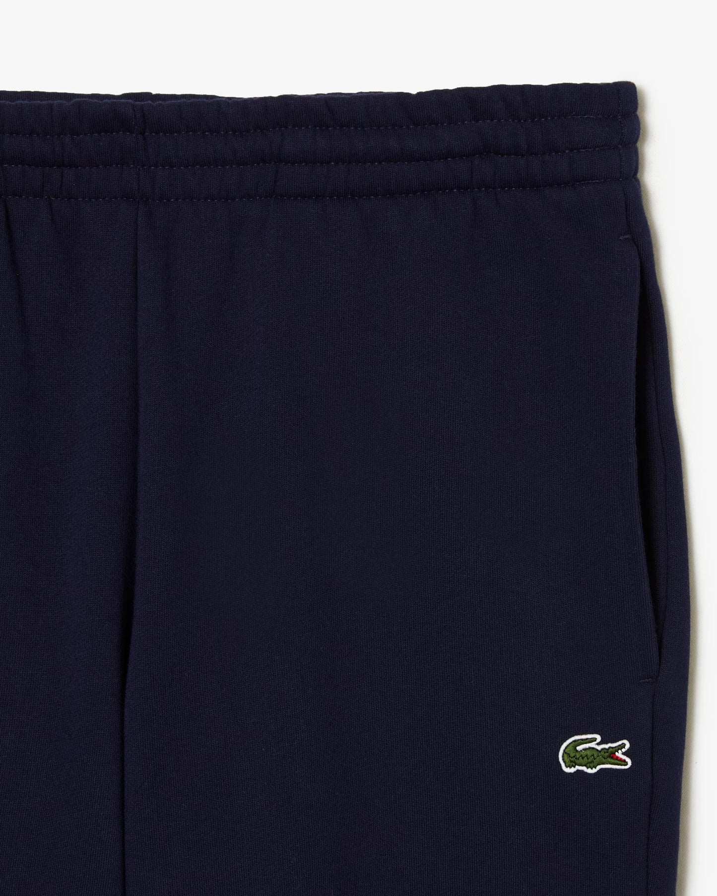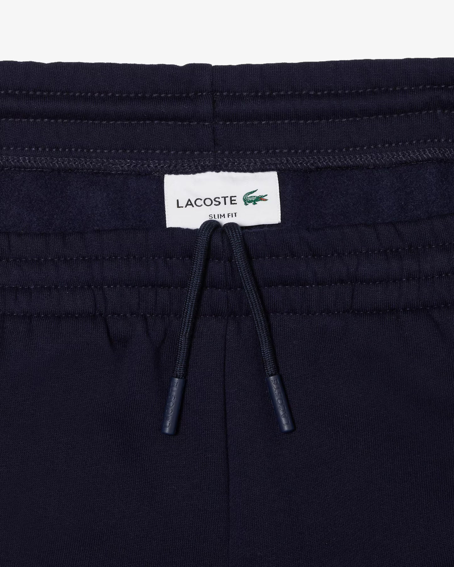 The iconic Lacoste tracksuit epitomises French elegance in motion. Crafted from organic brushed cotton fleece and recycled polyester, this essential piece marries comfort with understated sophistication. The slim-fit silhouette features an internal drawstring for refined styling, fitted ribbed cuffs at the ankles, and the signature embroidered crocodile positioned below the hip. A timeless investment in sportswear that transcends casual wear. Please note: this item runs small—we recommend sizing up one size from your usual fit.