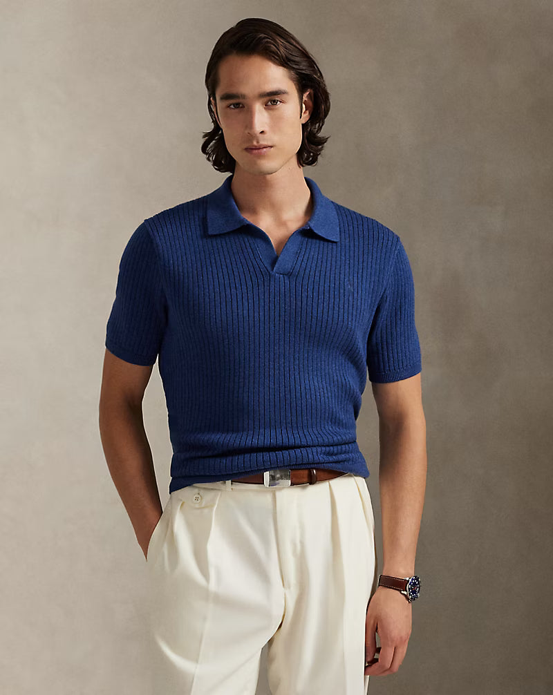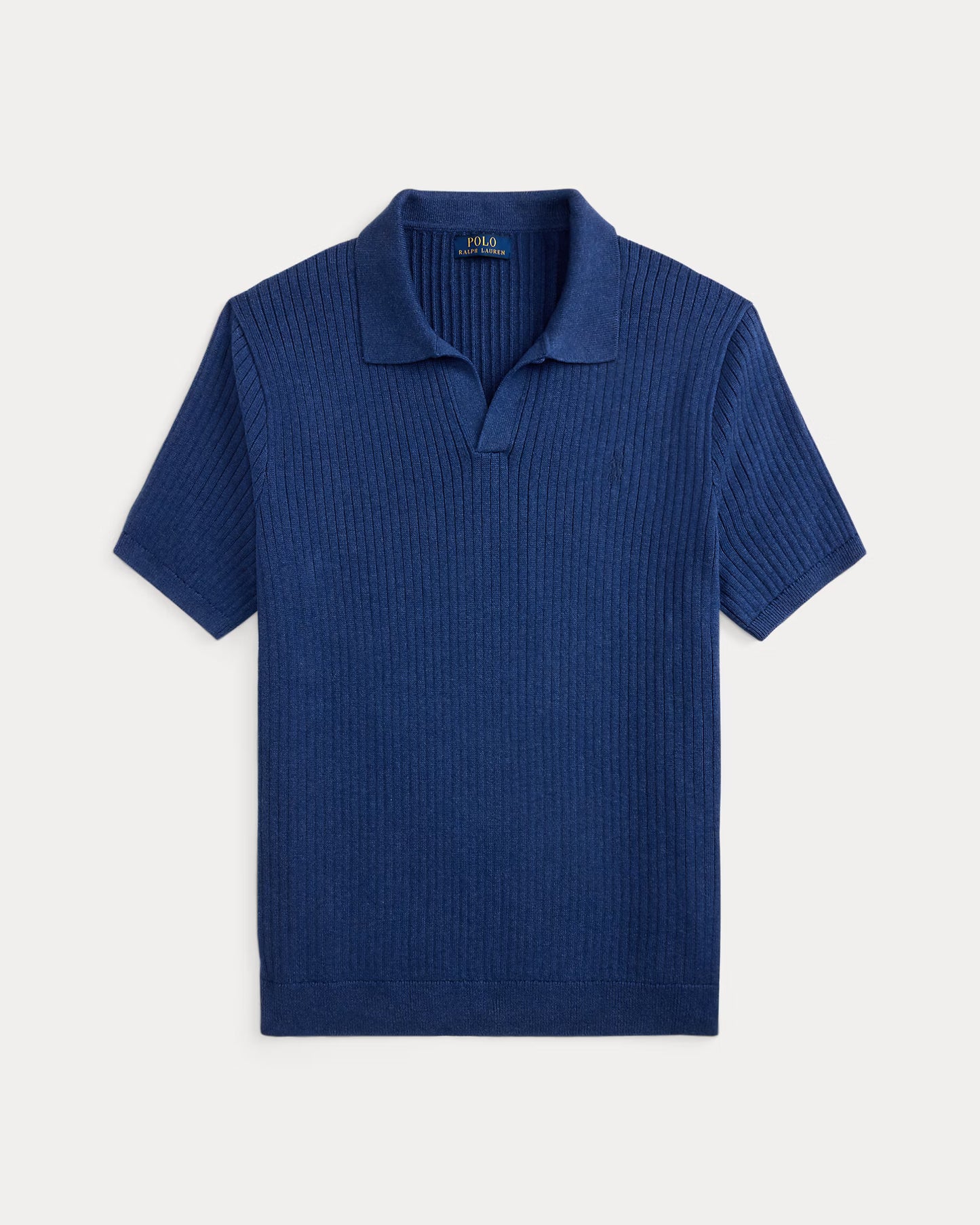Ralph Lauren Rib-Knit Cotton Johnny-Collar Jumper Navy