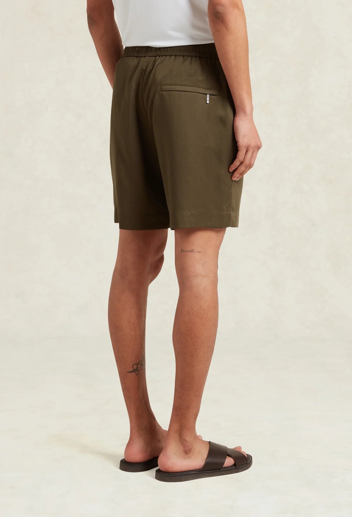 Embrace effortless summer style with the CHÉ Tencel Short in khaki. Crafted from Lenzing™ Tencel™—a luxuriously soft, sustainable fabric derived from responsibly sourced eucalyptus—these shorts offer superior drape and durability. The drawstring waist ensures a comfortable fit, while a secure zip back pocket with branded CHÉ puller adds refined detail. Pair with a CHÉ t-shirt or polo for understated sophistication. Biodegradable and produced using renewable energy, Tencel™ represents conscious luxury for the discerning gentleman.