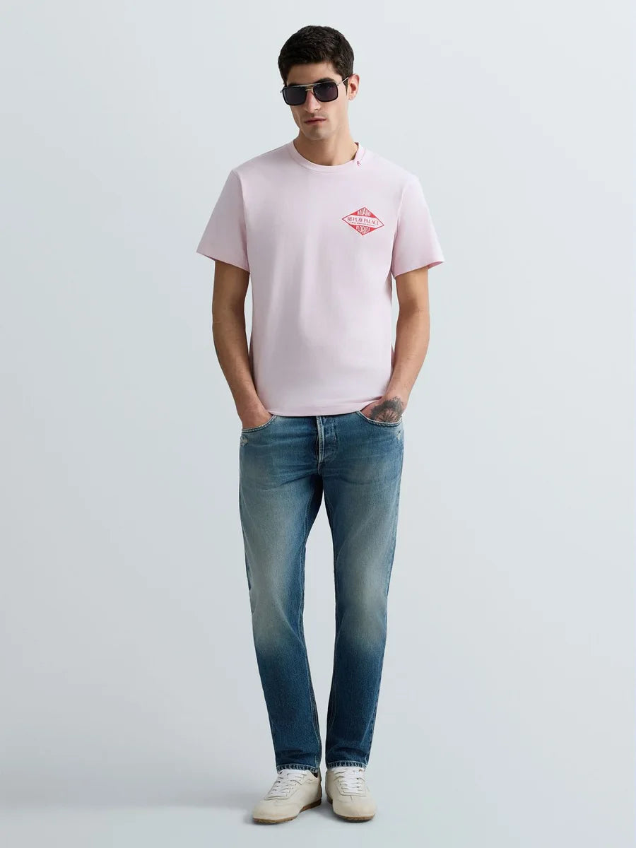 Replay Miami-Print Jersey T-Shirt Pink
