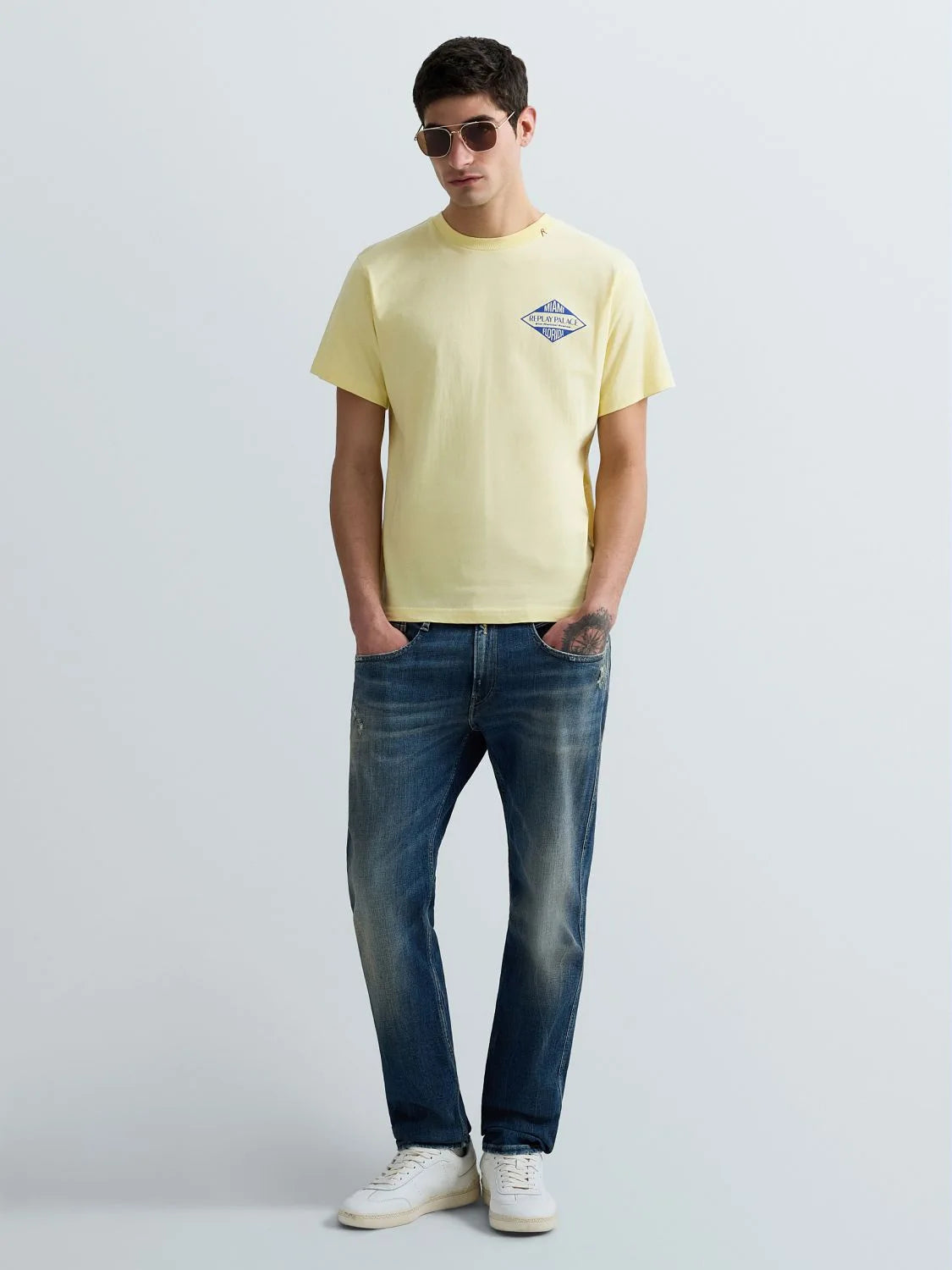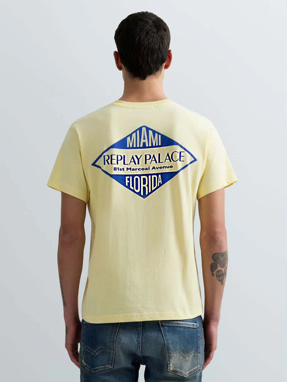 Replay Miami-Print Jersey T-Shirt Yellow