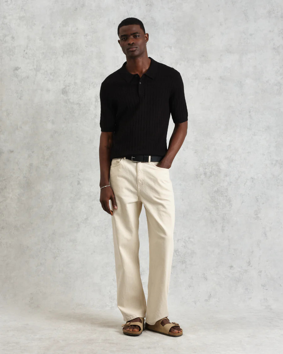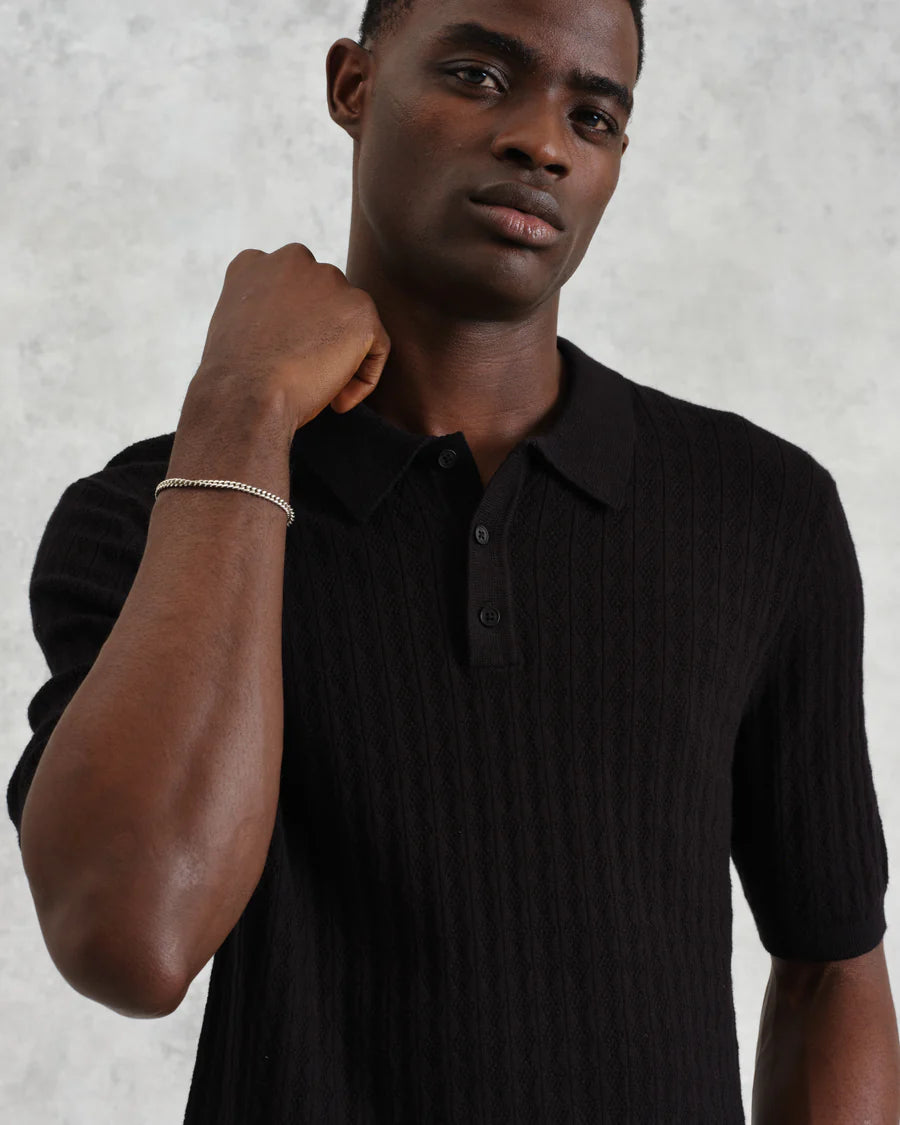 WAX London Naples - Black Diamond Stripe Knitted Polo