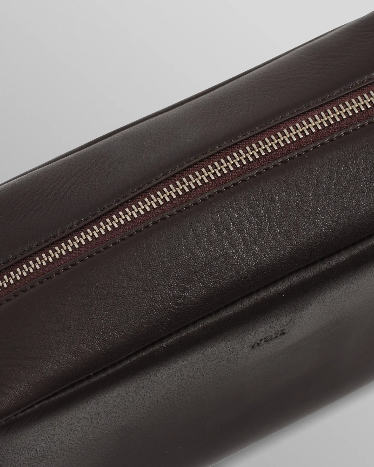 The Wells wash bag from Wax London is your refined travel essential. Crafted from supple dark brown grain leather, it combines understated elegance with practical functionality. Inside, you'll find a black cotton lining, internal zip pocket with branded badge, and a leather zip puller that feels as good as it looks. The embossed wax branding adds subtle sophistication, whilst the side handle ensures effortless carrying. A timeless piece for the discerning traveller.