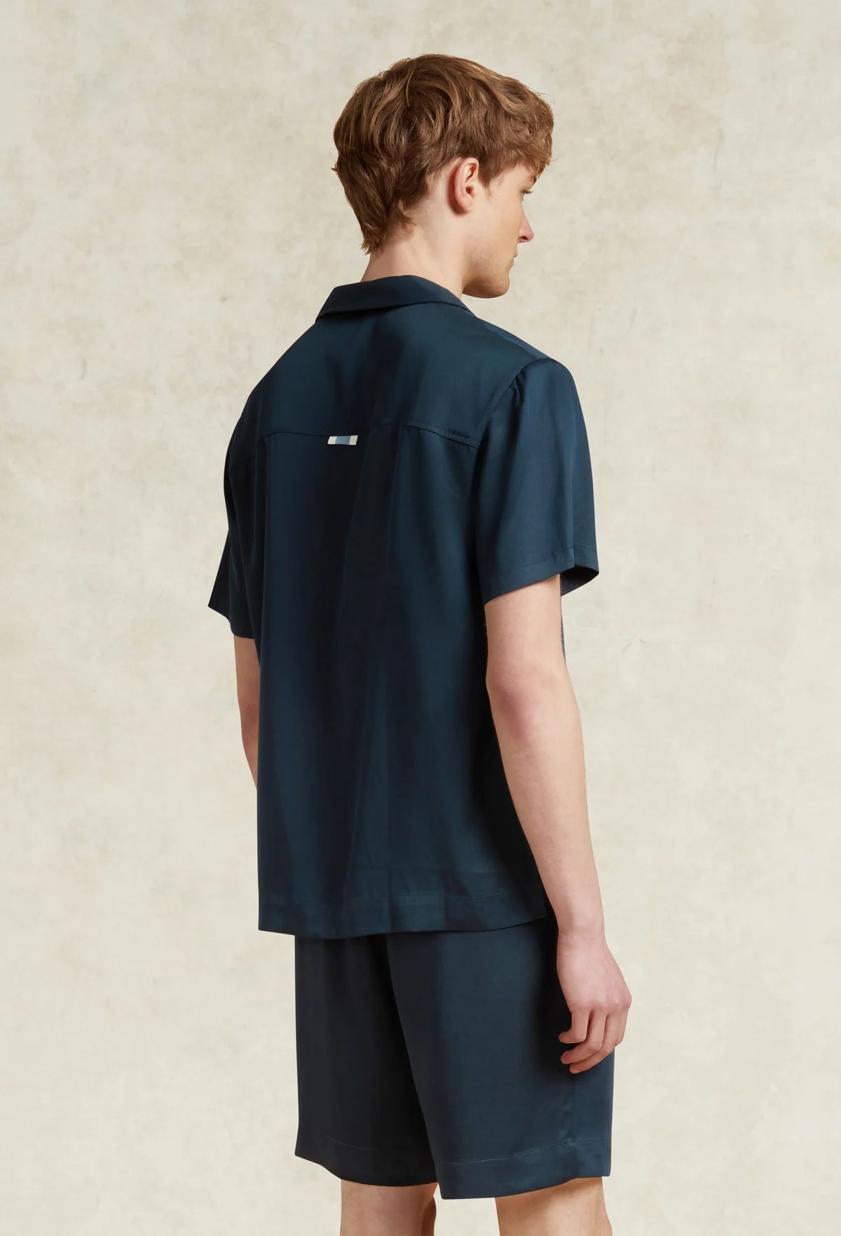 The CHÉ Tencel Shirt in navy combines contemporary style with environmental responsibility. Crafted from Lenzing™ Tencel™—a sustainably sourced natural fibre derived from fast-growing eucalyptus—this short-sleeved shirt offers a luxurious feel with exceptional softness and durability. The fabric's natural drape creates an effortlessly refined silhouette, whilst subtle CHÉ stripe detailing on the back yoke and branded trochus buttons add understated sophistication. Biodegradable and produced using renewable energy and recoverable chemicals, this shirt represents a conscientious choice for the discerning gentleman seeking quality without compromise.